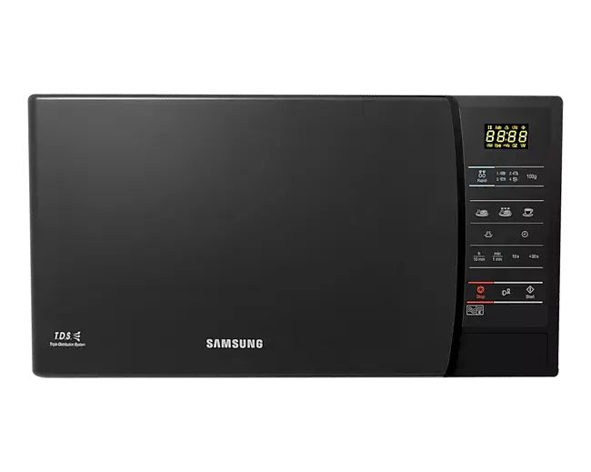 The **Samsung 20L Microwave Oven (ME731K-B)** is a **compact, efficient, and user-friendly** appliance designed for everyday cooking needs. With a **20-liter capacity** and **700W power output**, it ensures quick and even heating for meals. Featuring **Triple Distribution System (TDS) technology**, it provides uniform cooking results. The **ceramic enamel interior** is scratch-resistant, easy to clean, and antibacterial, ensuring hygiene and durability. The **simple dial controls** allow for effortless operation, making it perfect for reheating, defrosting, and cooking. Its **sleek black design** adds a modern touch to any kitchen.